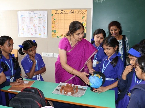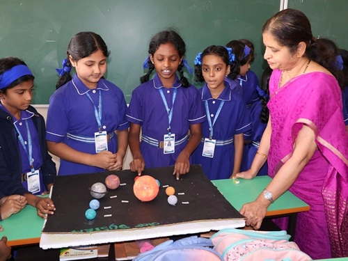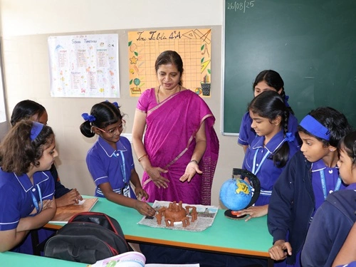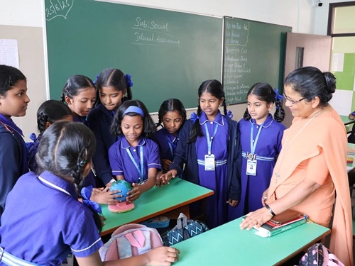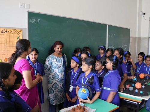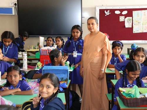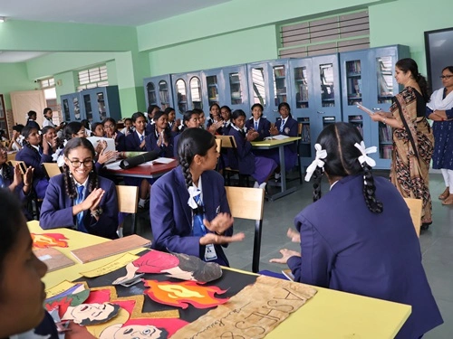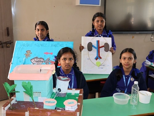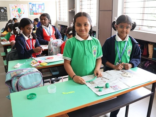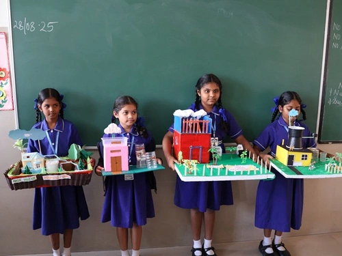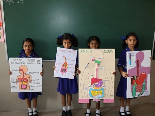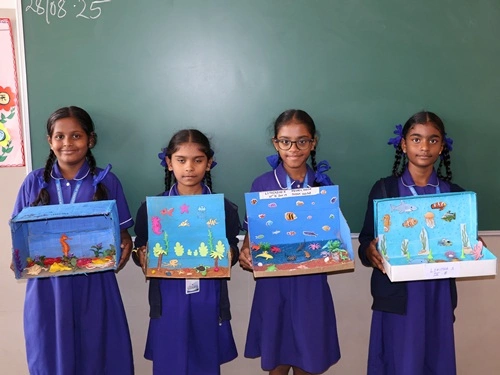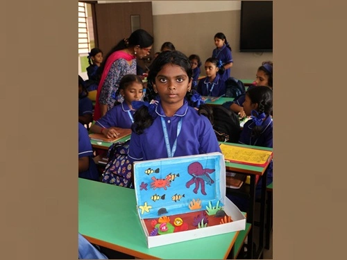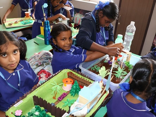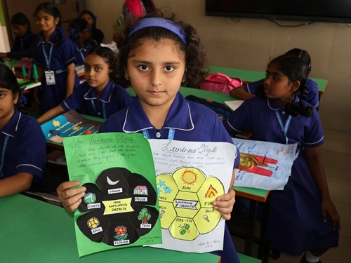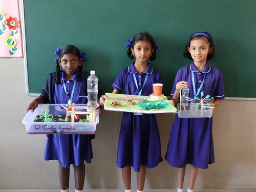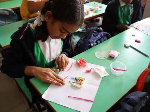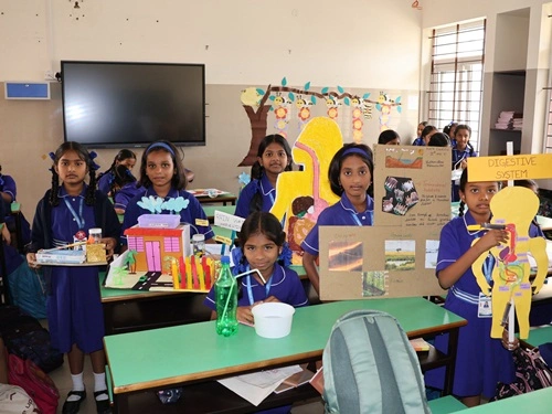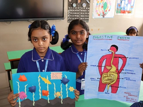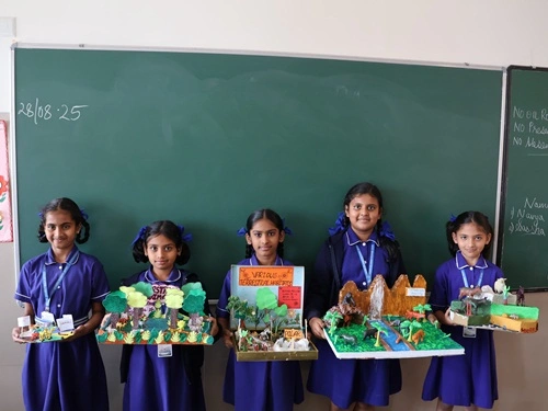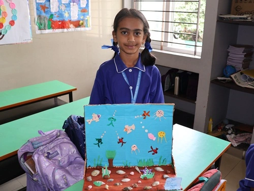 At our school, learning goes beyond rote memorisation and textbook teaching. Students are encouraged to learn by doing through class projects, activities, and enactments that allow them to explore concepts firsthand. These experiences help children connect learning to real life while nurturing creativity, confidence, and critical thinking. Students are also assessed for their participation, originality, and creative expression, ensuring that learning is holistic and that children are recognised not only for memory-based knowledge but also for their skills, ideas, and imagination.