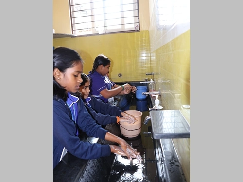 A simple yet impactful hand-washing session taught students the importance of hygiene. Through demonstration and practice, children learned the correct technique of washing hands, reinforcing healthy habits for everyday life.