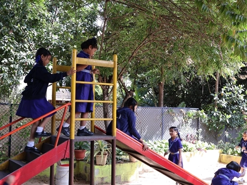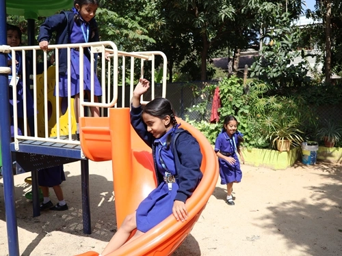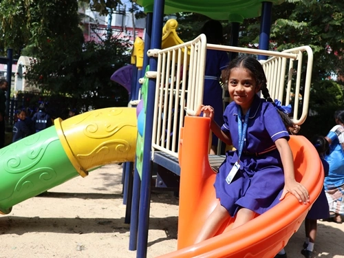 A cheerful outdoor space for relaxation, play and nature-based learning.