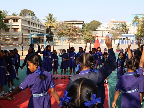 In this energetic activity, students formed two circles—outer circle as nouns and inner circle as verbs. When nouns were called, the noun circle clapped; when verbs were announced, the verb circle performed the action. Students then paired up to form meaningful sentences, making grammar interactive and dynamic.