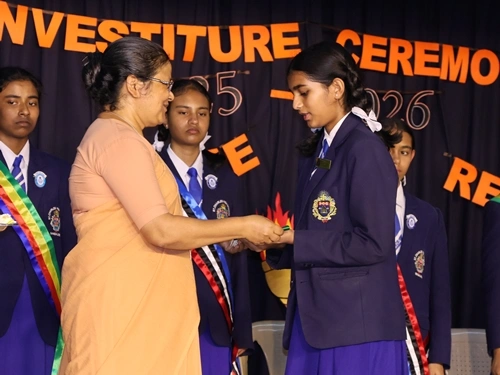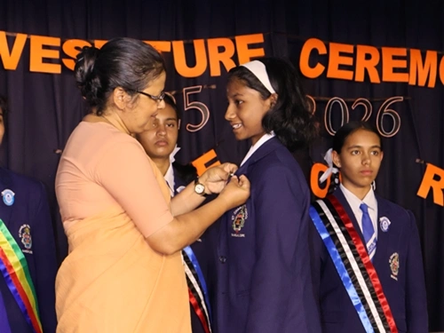 This significant event marked the formal swearing in of the newly elected Student Council, celebrating leadership, responsibility and commitment. The Chief Guest of the event Rev. Fr. Anil Joel Prasad , congratulated the leaders and delivered a thought provoking and a motivating speech. The elected leaders took a solemn pledge, affirming their commitment to uphold the school’s core values and to carry out their duties with sincerity and discipline.
