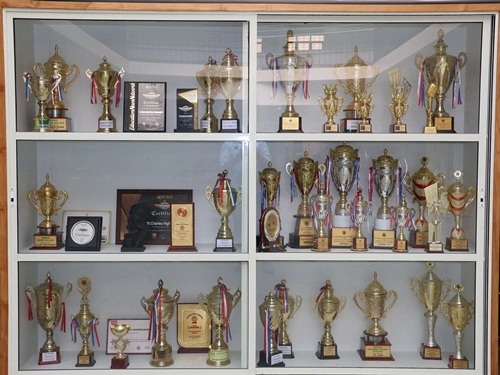 Beautifully arranged trophy cabinets that proudly displays the school’s achievements and victories over the years.