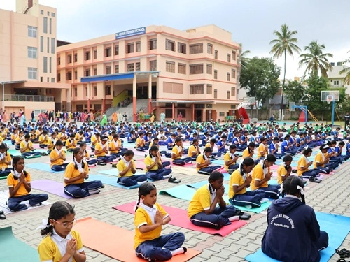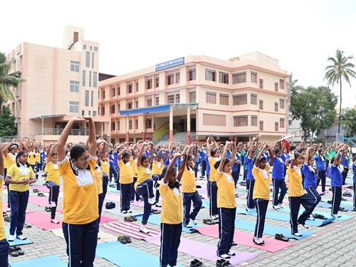 To mark the significance of International Yoga Day and to help students understand the role of yoga in maintaining physical and mental well -being, the school organized the event with active participation from the students. Mr. Navaneeth and Mr. Aditha, certified yoga instructors, were invited to conduct the session which included the asanas and meditation techniques.