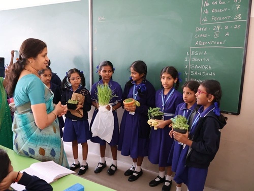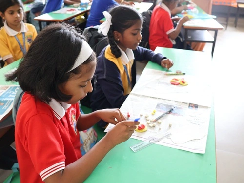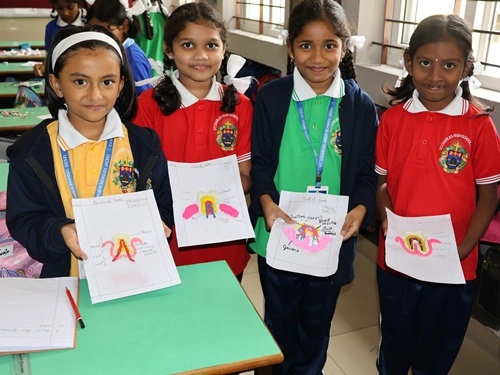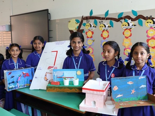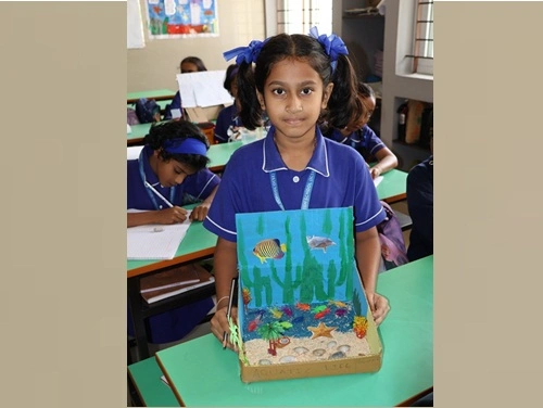 At our school, learning goes beyond rote memorisation and textbook teaching. Students are encouraged to learn by doing through class projects, activities, and enactments that allow them to explore concepts firsthand. These experiences help children connect learning to real life while nurturing creativity, confidence, and critical thinking. Students are also assessed for their participation, originality, and creative expression, ensuring that learning is holistic and that children are recognised not only for memory-based knowledge but also for their skills, ideas, and imagination.
