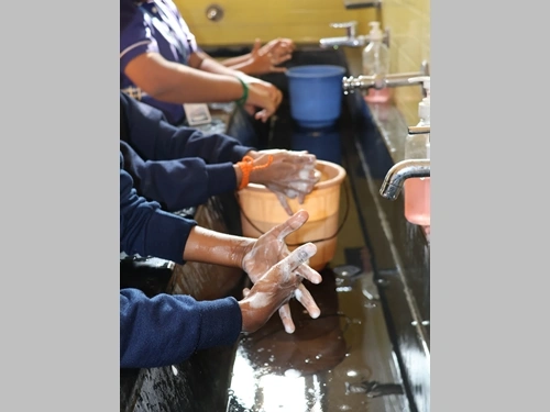 A simple yet impactful hand-washing session taught students the importance of hygiene. Through demonstration and practice, children learned the correct technique of washing hands, reinforcing healthy habits for everyday life.