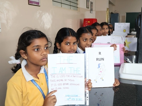 Interactive activities were conducted for Std 3 to help students understand the concepts of Articles