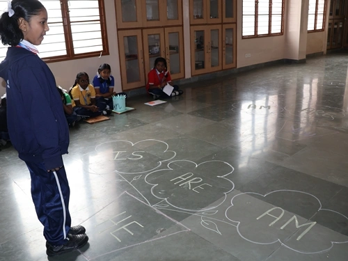 “A fun Helping Verbs Hopscotch Activity” was also organised, where students jumped from the